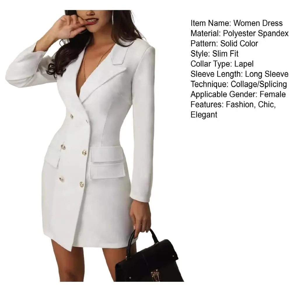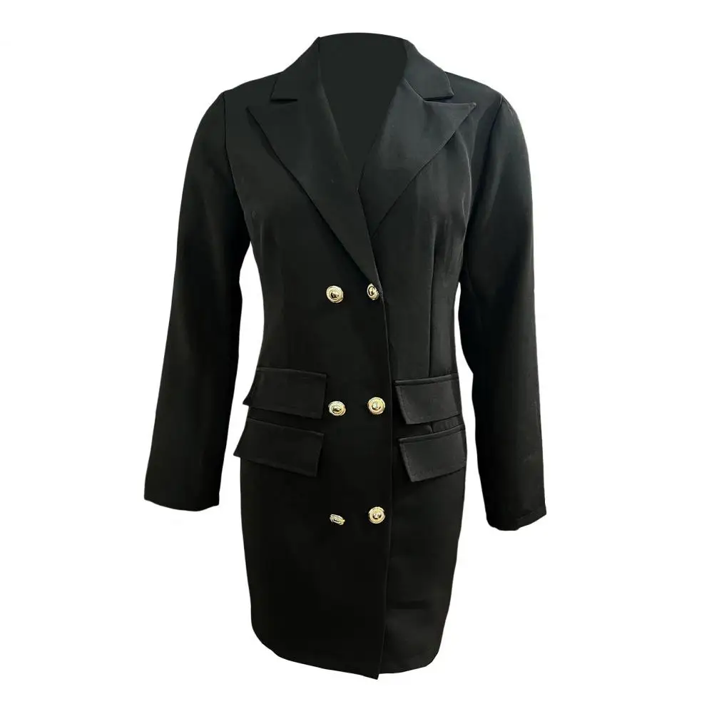 Classic Business Tailoring: Embrace a sleek H-shaped silhouette with a double-breasted design and fold-down collar that exudes professionalism. Ideal for formal settings like the workplace or meetings, this dress radiates confidence and capability, effortlessly creating a polished and authoritative image.